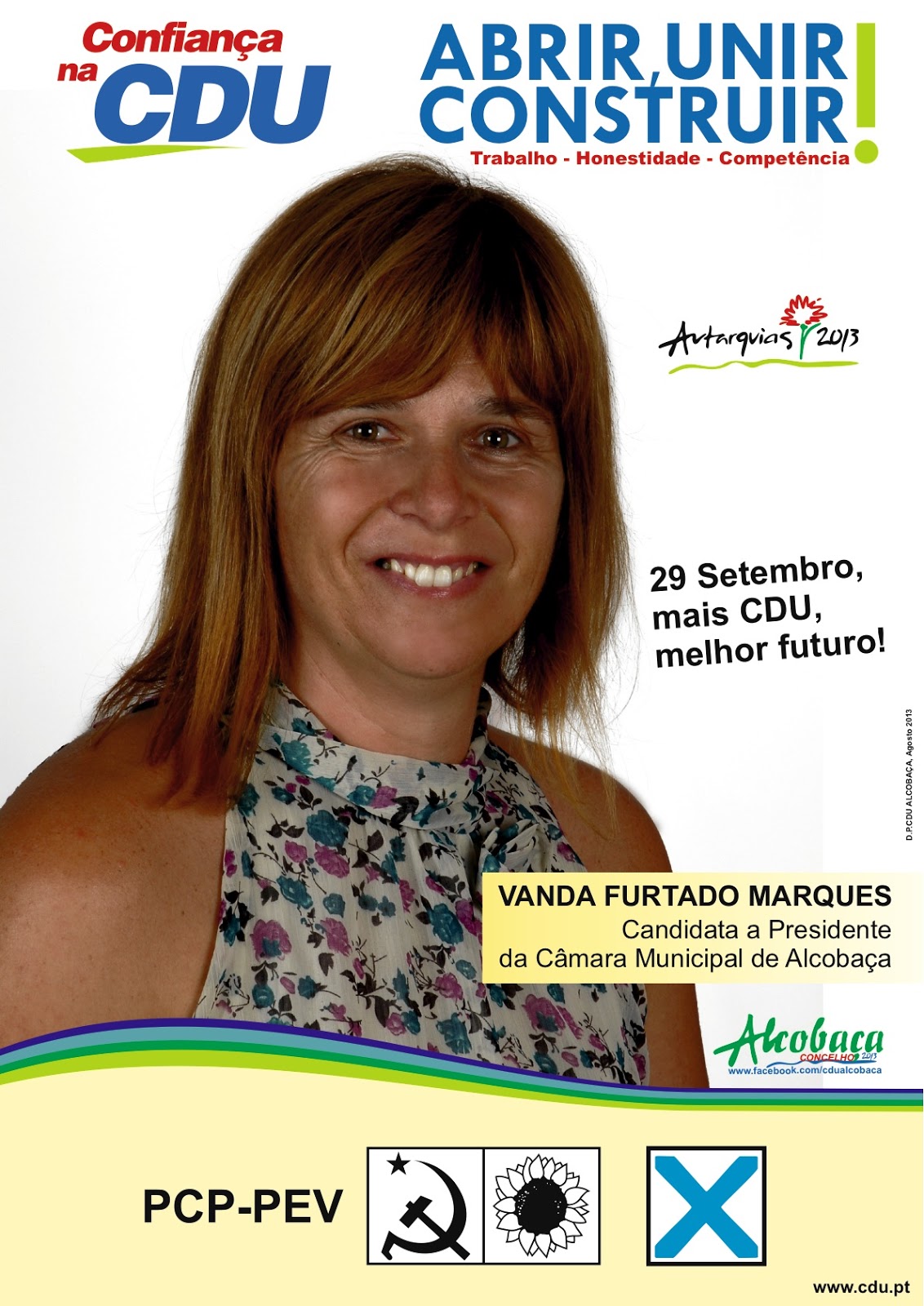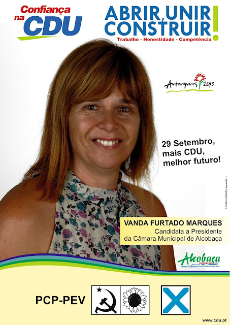 Os candidatos da CDU esperam uma campanha muito participada junto da população e obter um bom resultado no dia 29 de setembro. O encerramento da campanha decorrerá no dia 27 de setembro, no Cine-Teatro João d’Oliva Monteiro, em Alcobaça, com um espetáculo com a participação de artistas concelhios.